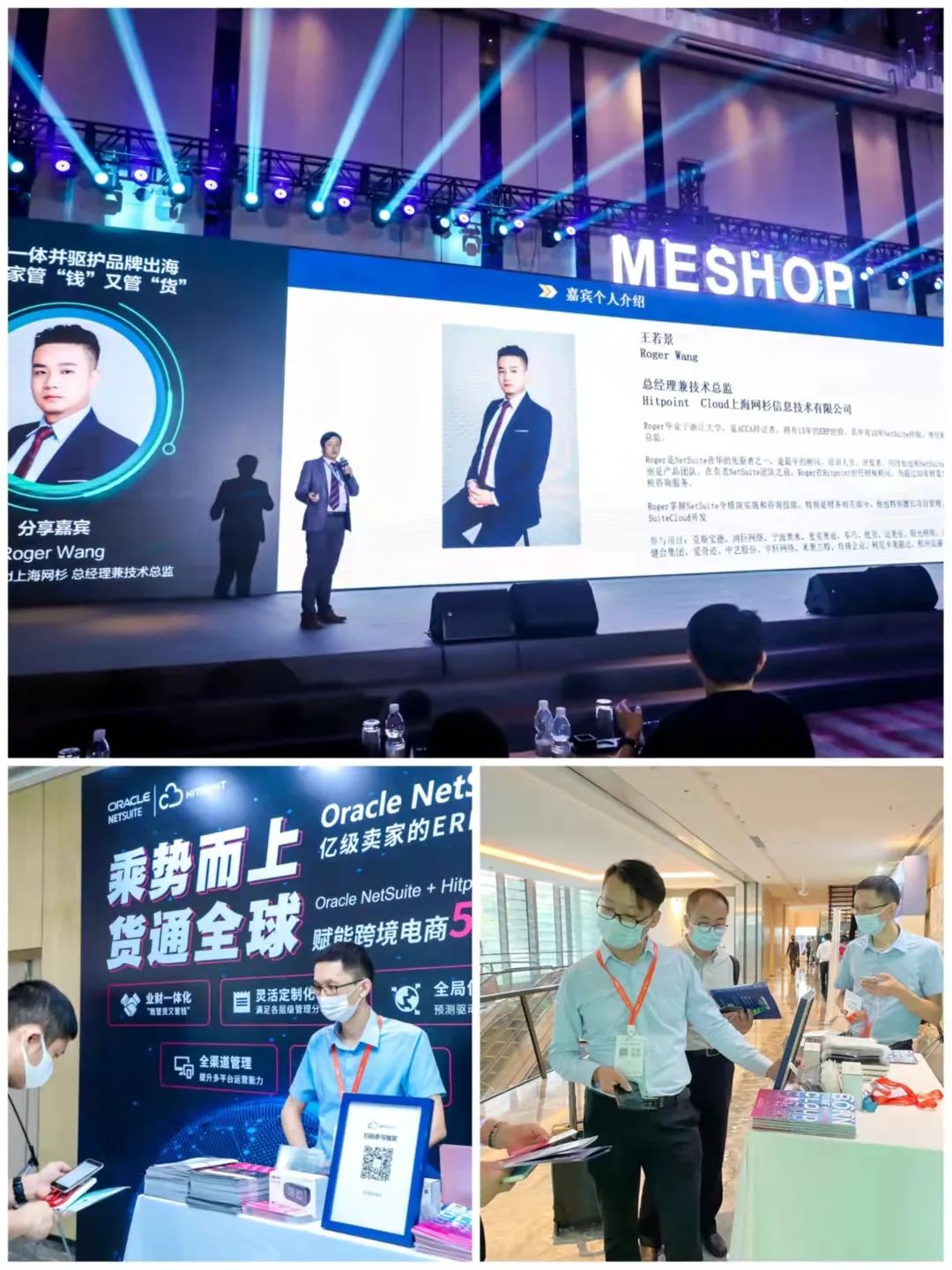 更有Hitpoint Cloud总经理兼技术总监王若景Roger Wang于现场围绕跨境电商独立站运营的挑战与机遇、业一体化助力亿级卖家品牌出海以及信息化助力大卖运营升级三个要点出发展开演讲,从独立站运营挑战出发到信息化运营升级,现场模拟讲解全套的独立站高效合规运营方案,以信息化之力助独立站实现运营新飞跃。